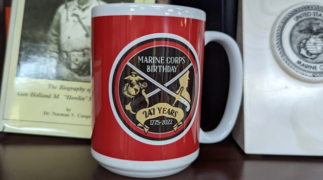 Every year, The Marine Shop has a new, unique, exclusive design to celebrate the Marine Corps birthday. The design is created in house and will feature iconic imagery of the Corps. In the past we have featured Land, Sea, and Air, First to Fight, and R. Lee Ermey. This year the logo features the iconic Marine Corps sabers, Officer and NCO, crossed, honoring the Corps values of Honor, Courage and Commitment. Our 247th Birthday collection of products are great for birthday celebrations, party favors, collectibles, and gifts.