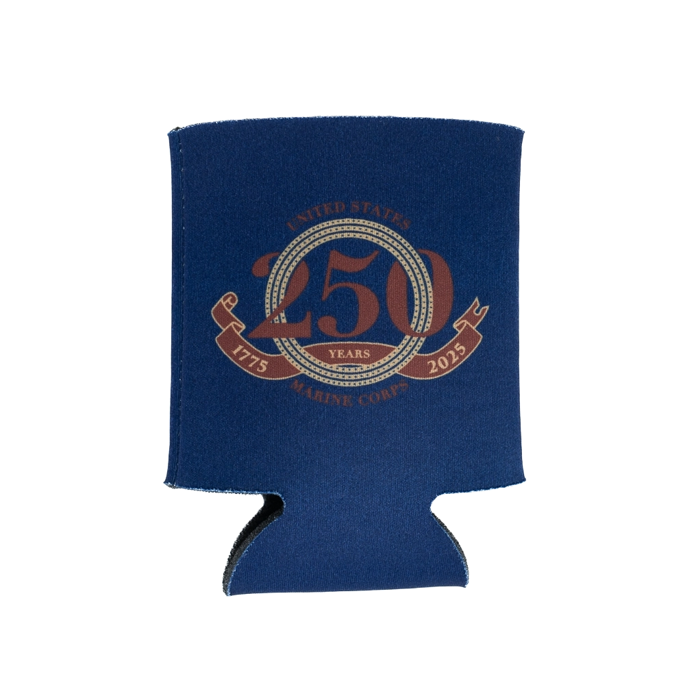 Keep your drink cool for this Marine Corps Birthday with the 250th Birthday Ball Koozie! Screen-printed with our exclusive 250th Birthday Ball design using a sublimation technique, this koozie features 250 stars encircled within the larger “250” to commemorate all the years of honor and service to the Corps. A great gift to celebrate this momentous occasion!