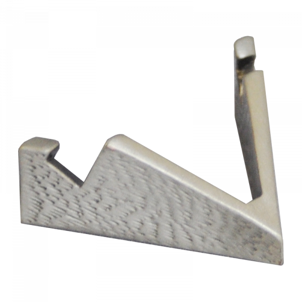 Coin stand textured, antique silver finish metal easily accommodates large Challenge Coins. V-shaped easel measures 1 1/2″ across front span.
