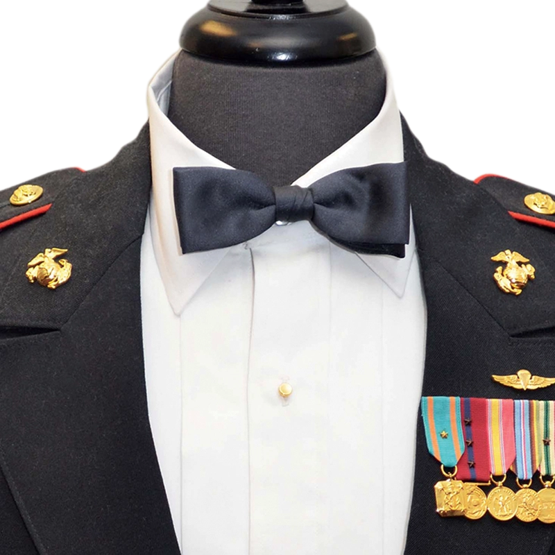 This black satin clip-on bowtie can be used for SNCO evening dress as well as Marine Corps League.