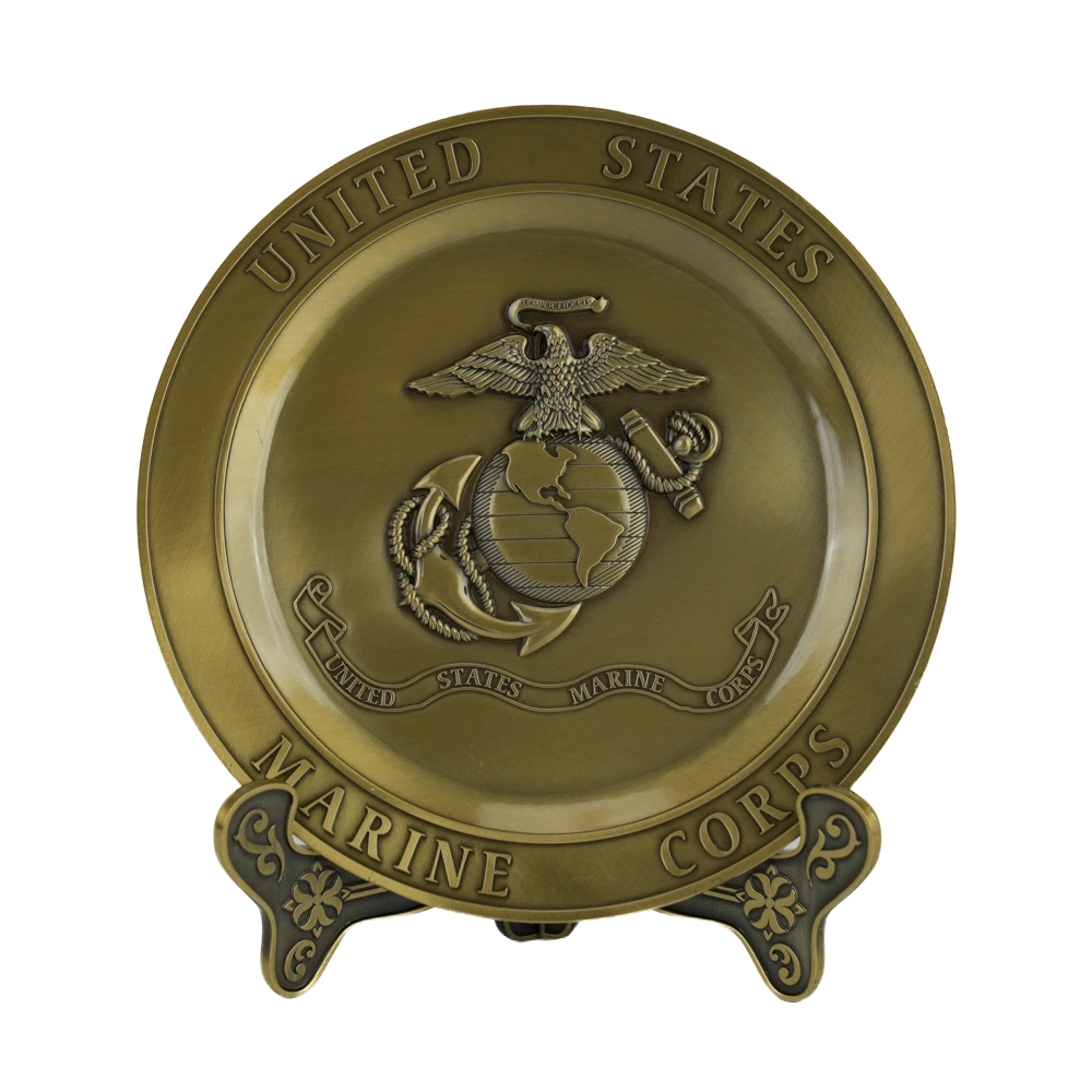 Elevate your display with the Brass EGA & Ribbon Metal Plate with stand, showcasing the iconic Eagle, Globe, and Anchor with an accompanying ribbon design.