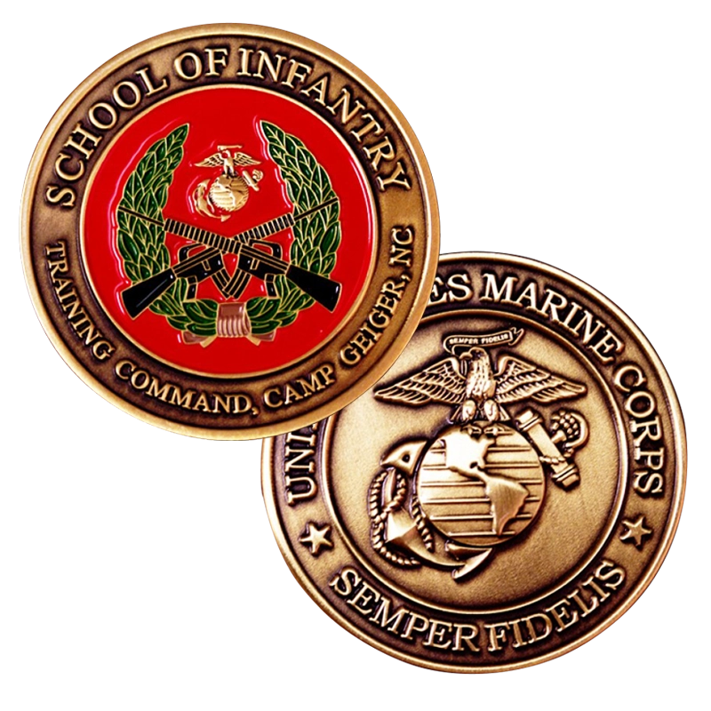- FRONT EDGE: “School of Infantry” and “Training Command, Camp Geiger, NC”