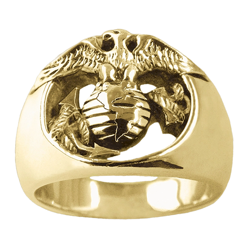 Marine Corps ring design is carved under the wings and globe, as shown above, to enhance the design and offset the Eagle, Globe & Anchor. No gluing, no plating, no soldering, and no chance of falling apart.: