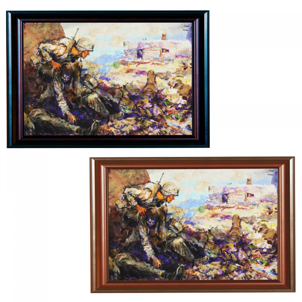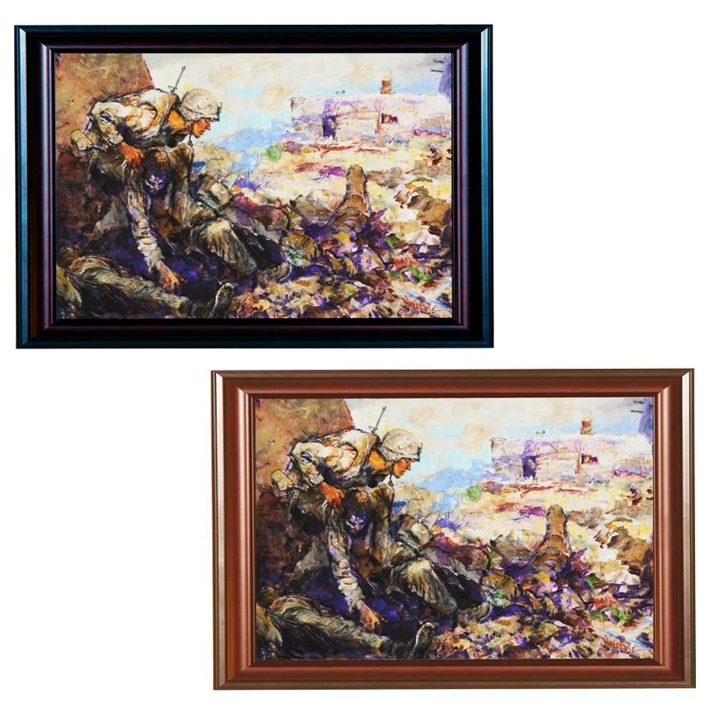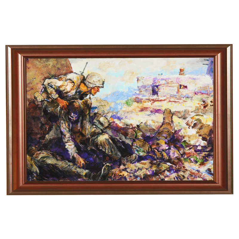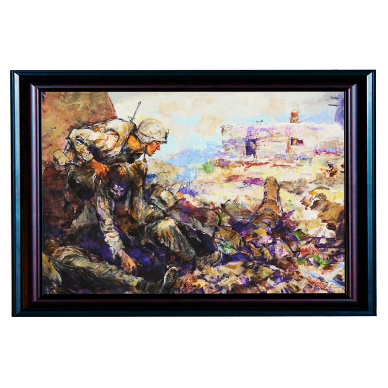 This print highlights the heroic efforts of Corporal Dakota Meyer in Afghanistan. This print is part of Col. Waterhouse’s Medal of Honor series which pays tribute to Marine Corps Medal of Honor recipients. Meyer is the youngest living Medal of Honor recipient and the first living Marine in 38 years to be so honored.
