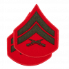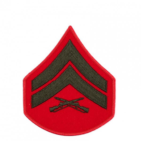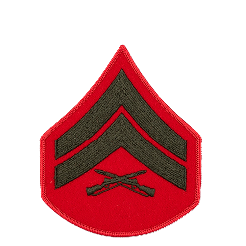 Green on red embroidered chevrons for Corporal Service uniform.