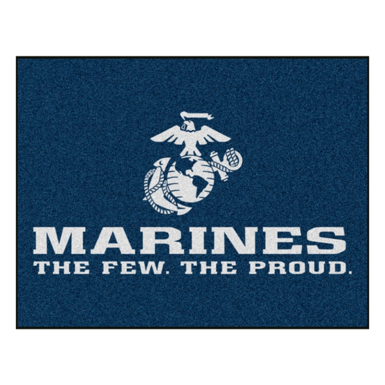 Join the All-Star team and decorate your home or office with floor mat. Blue mat has white Eagle, Globe & Anchor silhouette and “Marines – The Few. The Proud.” Made in the USA with 100% nylon carpet in vibrant colors and non-skid recycled vinyl backing. Serged borders add durability and style. Officially licensed and chromojet-printed in true USMC colors for vibrant, lasting color.