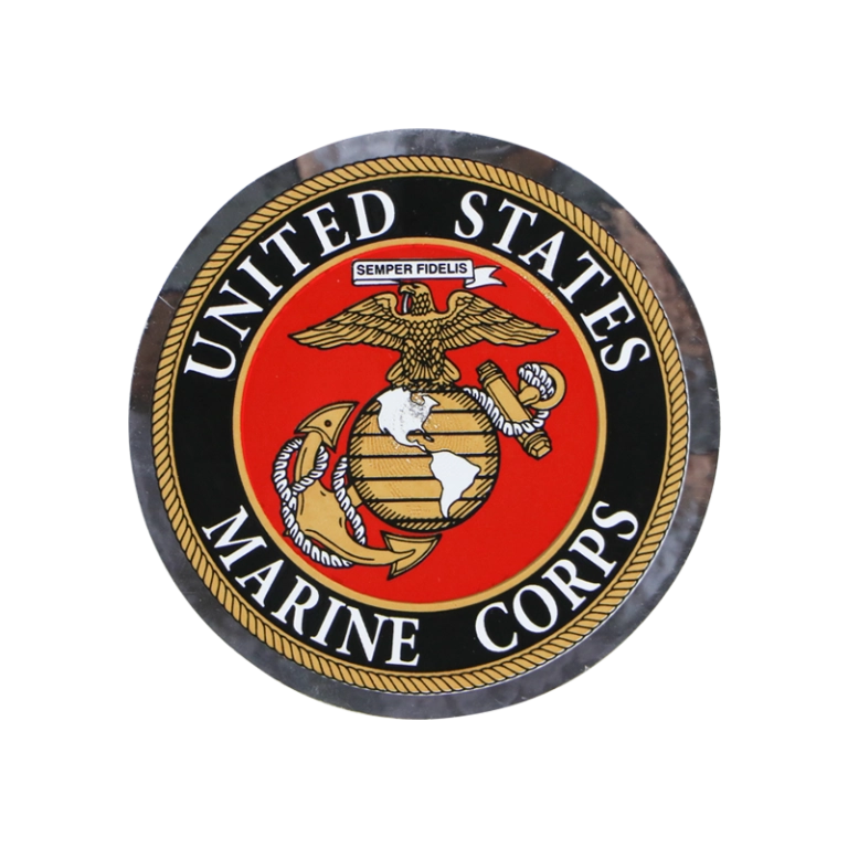 Black, red and silver prism Eagle, Globe & Anchor decal.