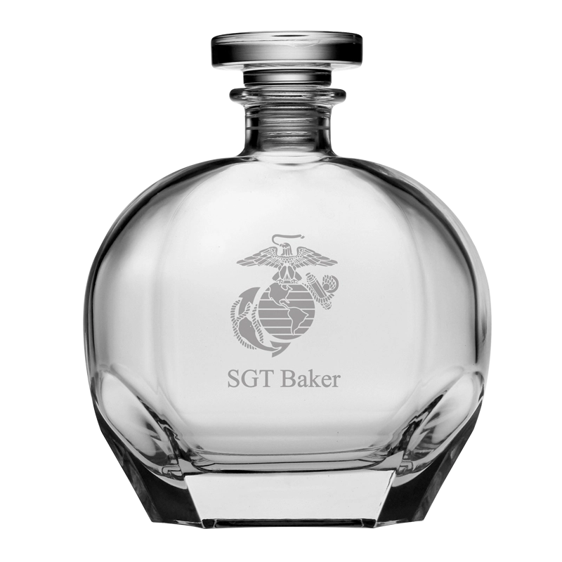 Personalize this decanter for a remarkable gift for your favorite Marine. Each decanter is etched with an Eagle, Globe & Anchor. Purchase the decanter with only this design or have it personalized – no additional fees required!