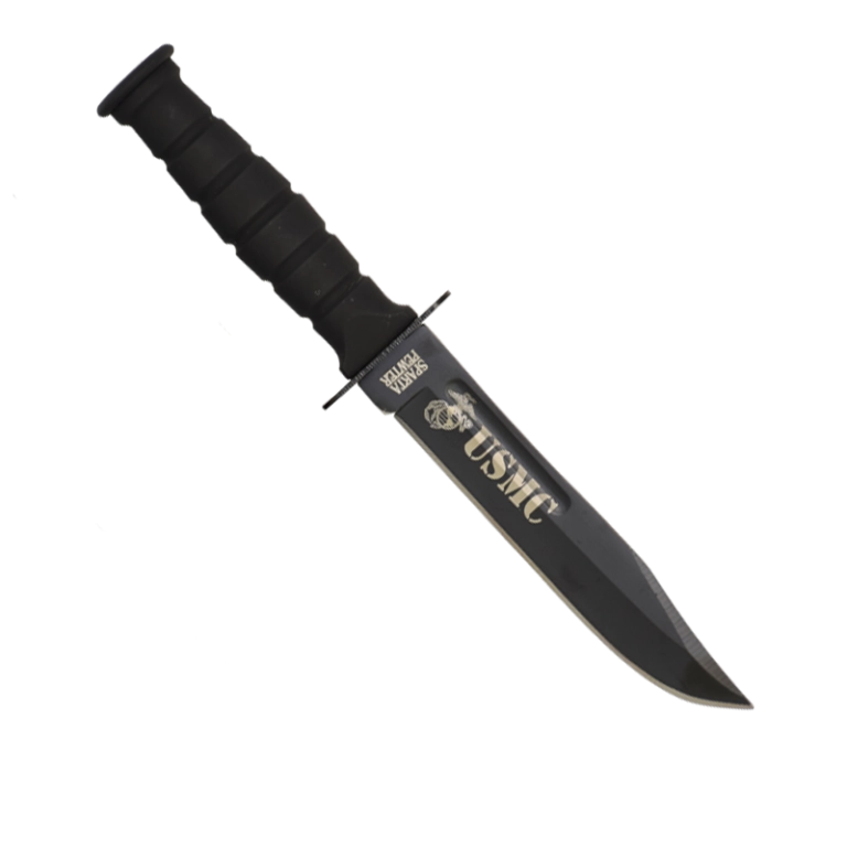 Letter opener in the shape of a fighting knife has Eagle, Globe & Anchor and “USMC” laser engraved on the blade. Engraving available on reverse side of blade.