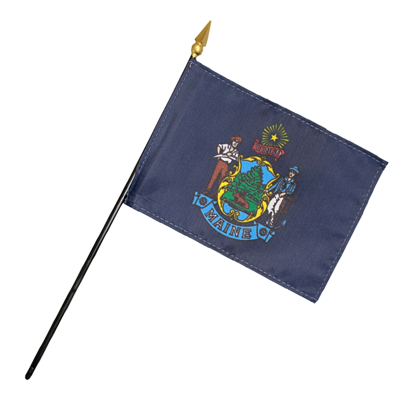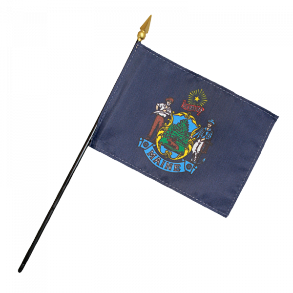 The flag of Maine consists of a blue background and the state’s coat of arms.
