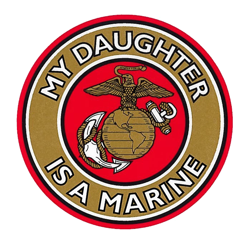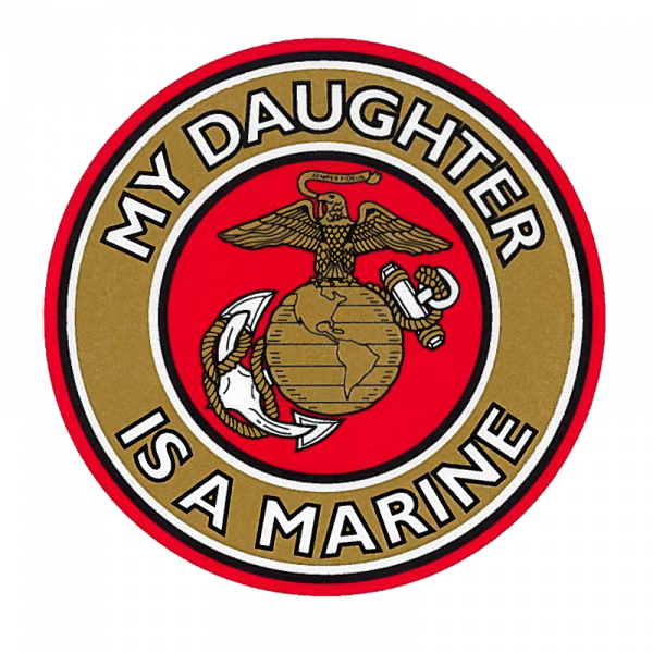 Display your pride with this “My Daughter is a Marine” decal with a red and gold USMC emblem.