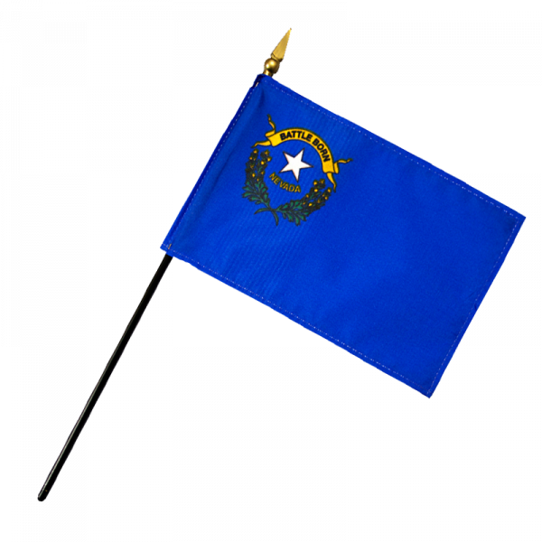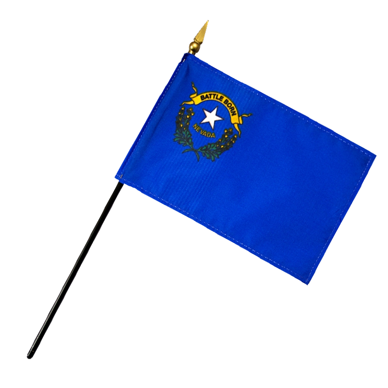 The flag of Nevada consists of a blue field with a star in the upper left corner, surrounded by the state name “Nevada”.
