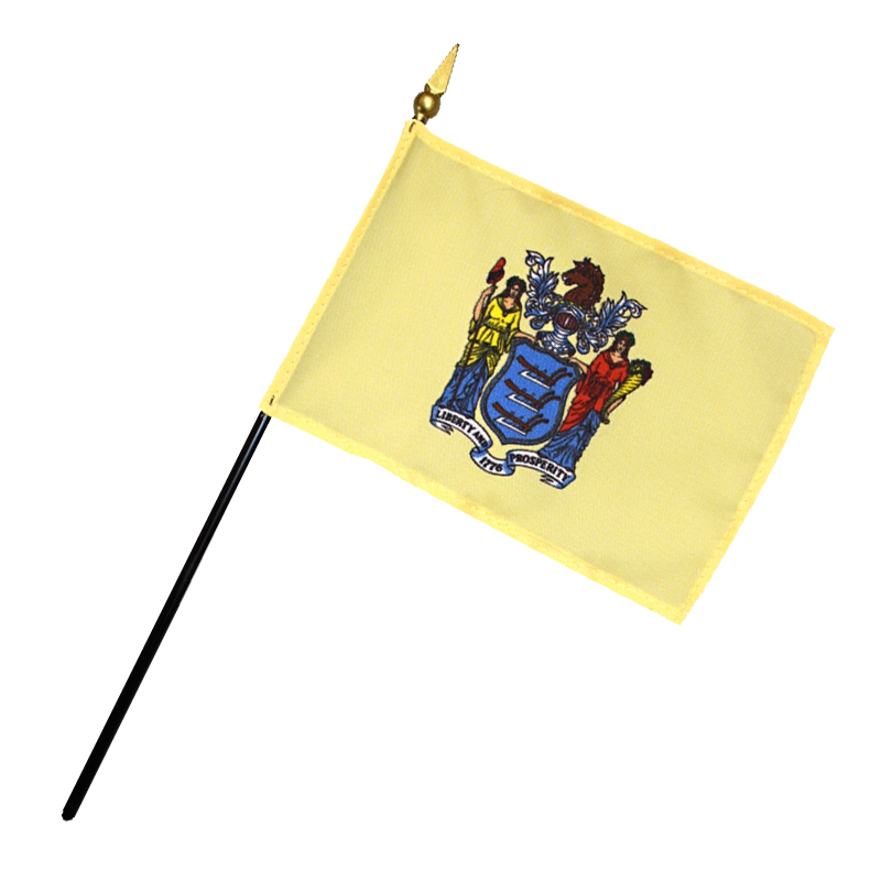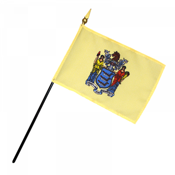 The flag of New Jersey includes the emblem from the official seal of New Jersey on a yellow background.