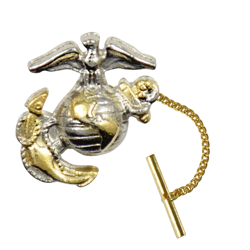 Officer’s Eagle, Globe & Anchor tie tack in silver and gold. Wear this tie tack with chain with your favorite civilian necktie.
