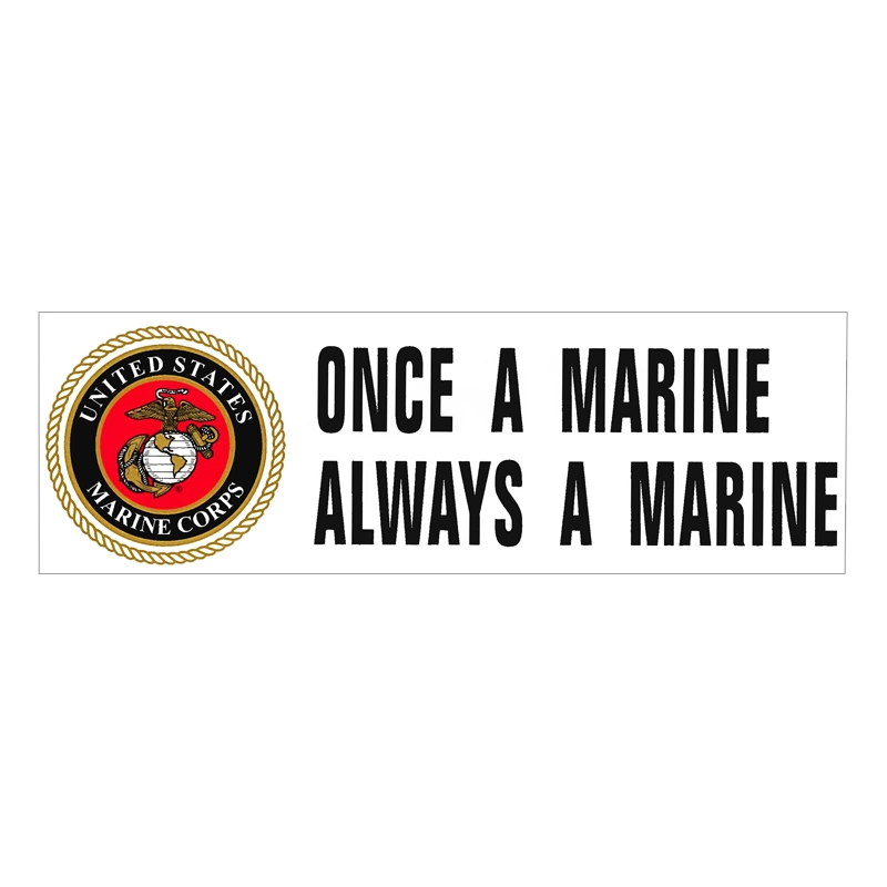 White bumper sticker with full color USMC emblem and “Once A Marine, Always a Marine.”