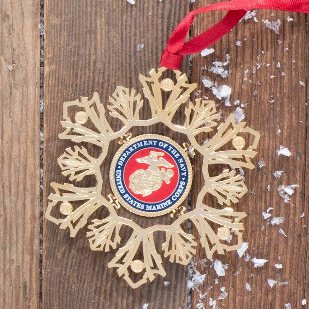 Celebrate the season with this elegant U.S. Marine Corps Snowflake Ornament. Featuring a delicate snowflake design paired with the iconic Marine Corps emblem, this ornament blends holiday charm with Marine pride.