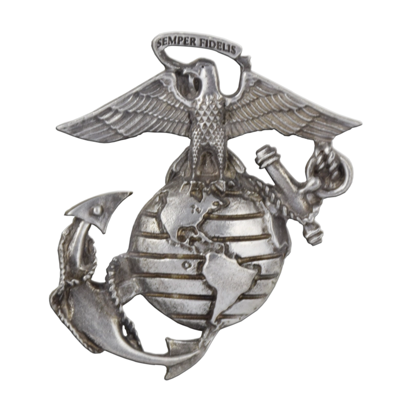 Large, pewter Eagle, Globe & Anchor magnet will look great holding up children’s art on the fridge or memos on your office filing cabinet.