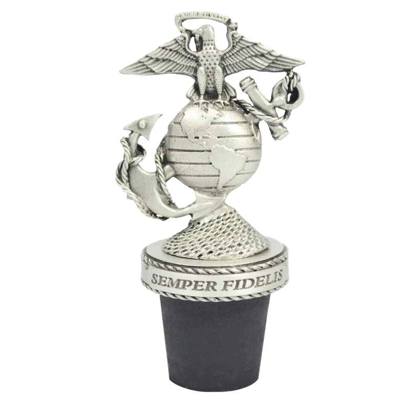 Wine and dine your guests in style with this pewter bottle stopper. Topper has large Eagle, Globe & Anchor, the phrase “Semper Fidelis” appears at the base. This wine bottle stopper is also a fine “welcome aboard” or farewell gift for your fellow Marines.