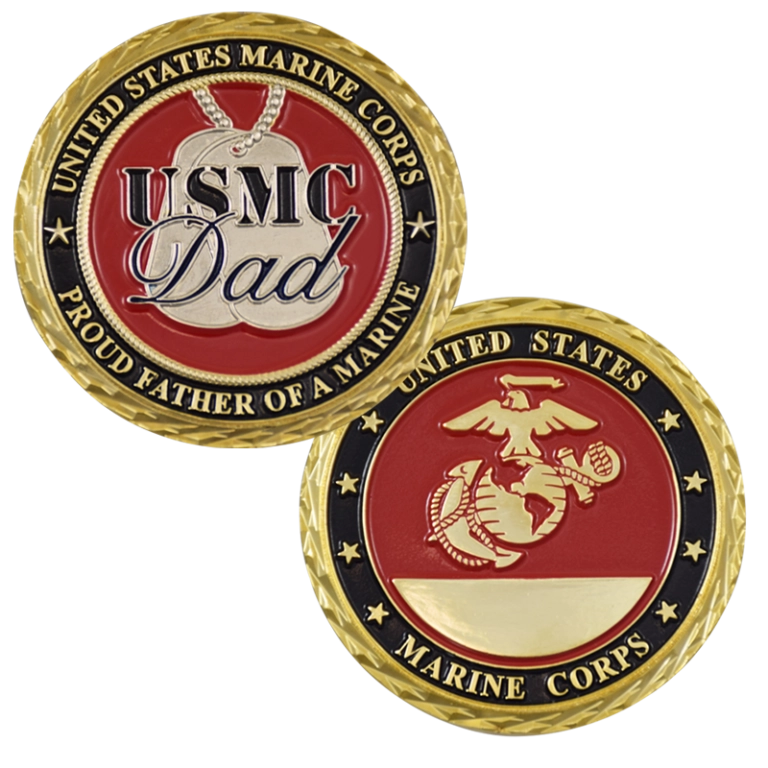 - FRONT VERSE: “USMC Dad” over dogtags design in mixed fonts