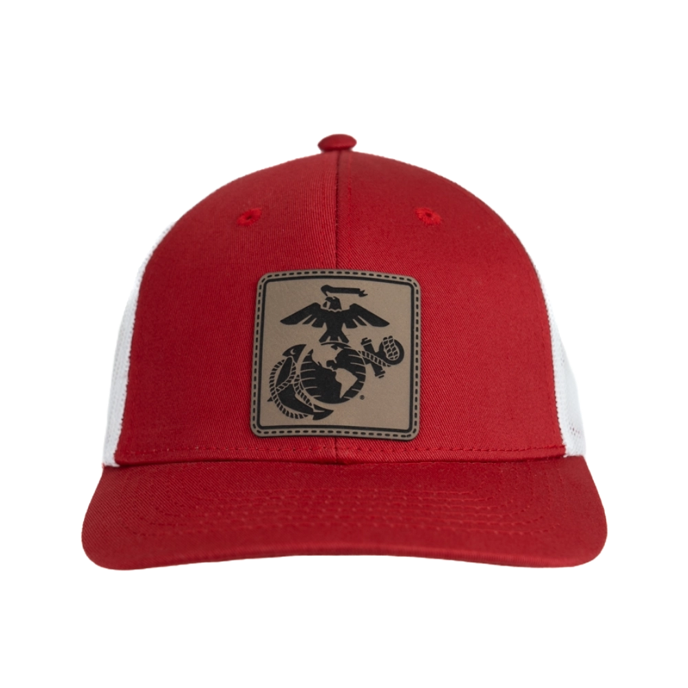 Stay cool and classic with the Red/White Trucker Hat – USMC EGA. Featuring a mesh back for breathability and the iconic Eagle, Globe, and Anchor emblem, this hat is perfect for casual outings or Marine Corps events.