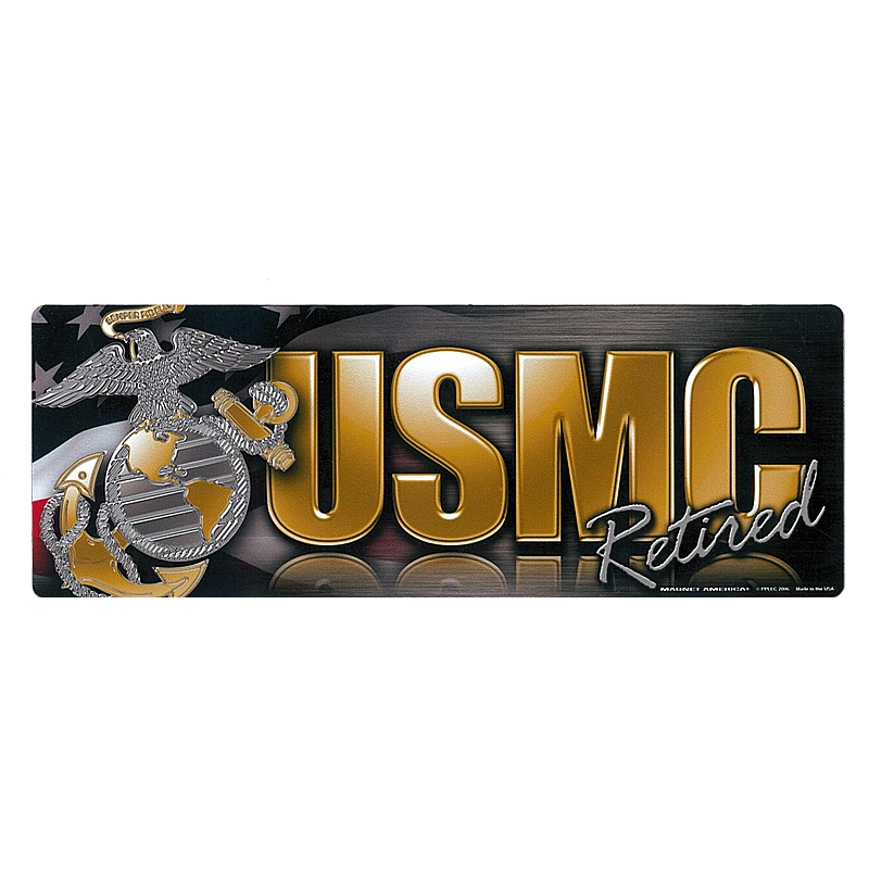 Retired USMC magnet with superior graphics would look great on your car, file cabinet or refrigerator. Large magnet measures approximately 2 3/4″ H x 7 3/4″ W.