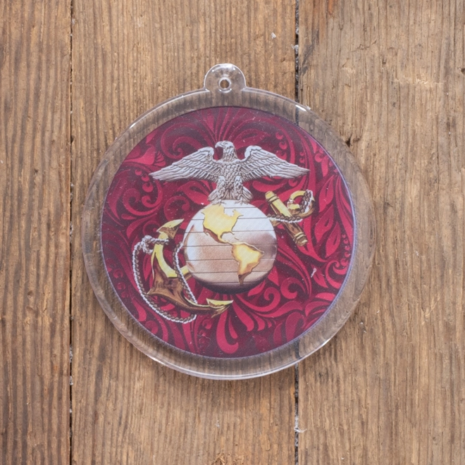 Show off your Marine Corps pride this holiday season by adorning your Christmas tree with this 3″ round disc ornament featuring the Eagle, Globe, and Anchor.