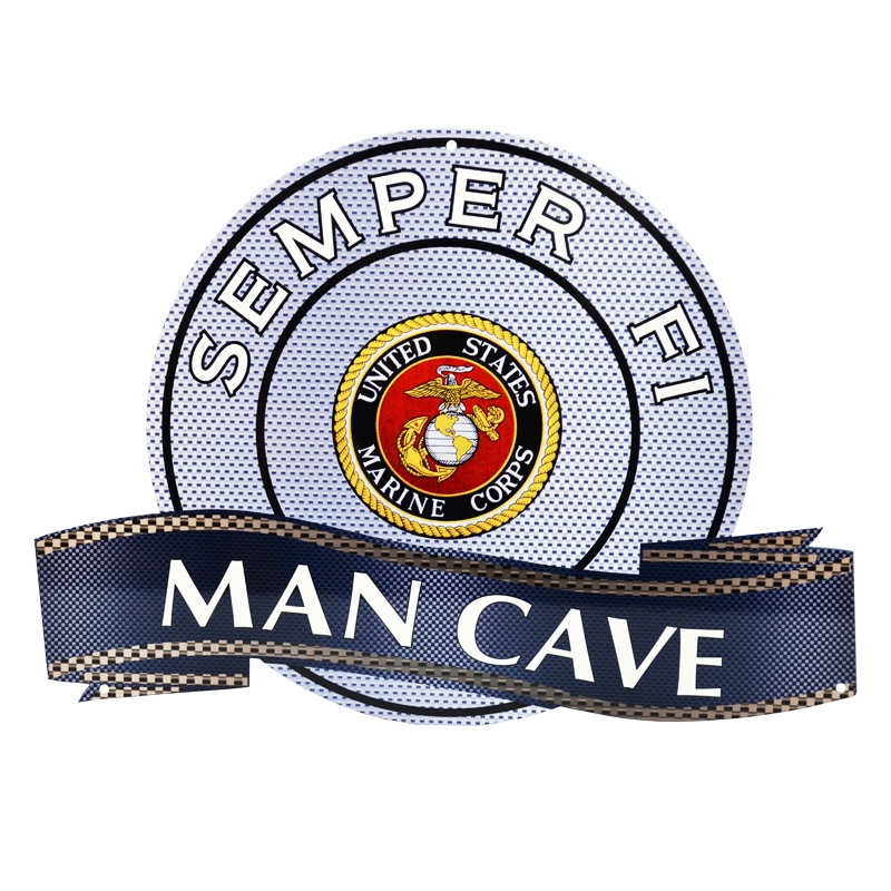 Mark your territory with this impressive “Semper Fi” man cave sign. PhotoSTEEL™ process embeds the photo-perfect image in virtually indestructible 14 gauge steel. Has pre-drilled holes for mounting, standing independently or hanging freely from the ceiling or an outside eave.