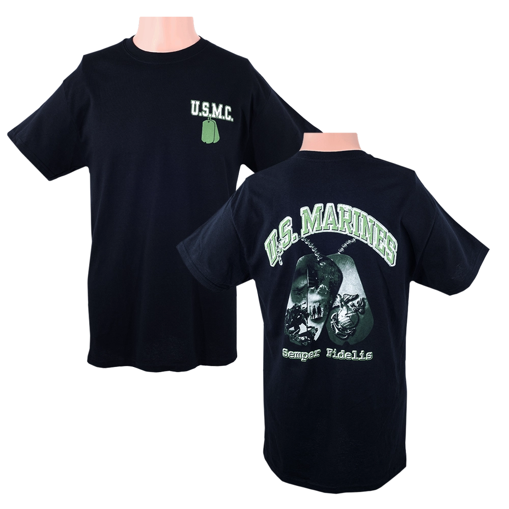 The U.S. Marines Dog Tags t-shirt is a stylish and patriotic garment that pays tribute to the United States Marine Corps. Featuring a unique design, this t-shirt is a great way to show support and honor the brave men and women who serve in the Marines.