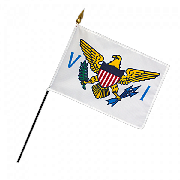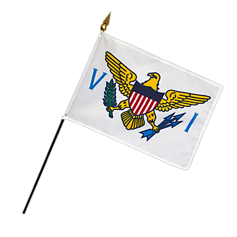 The current flag of the U.S. Virgin Islands was officially adopted in 1921. As an unincorporated territory of the United States, the island’s flag features parts of the U.S. seal. One eagle claw holds three arrows, representative of the three major islands, while the other claw holds an olive branch.