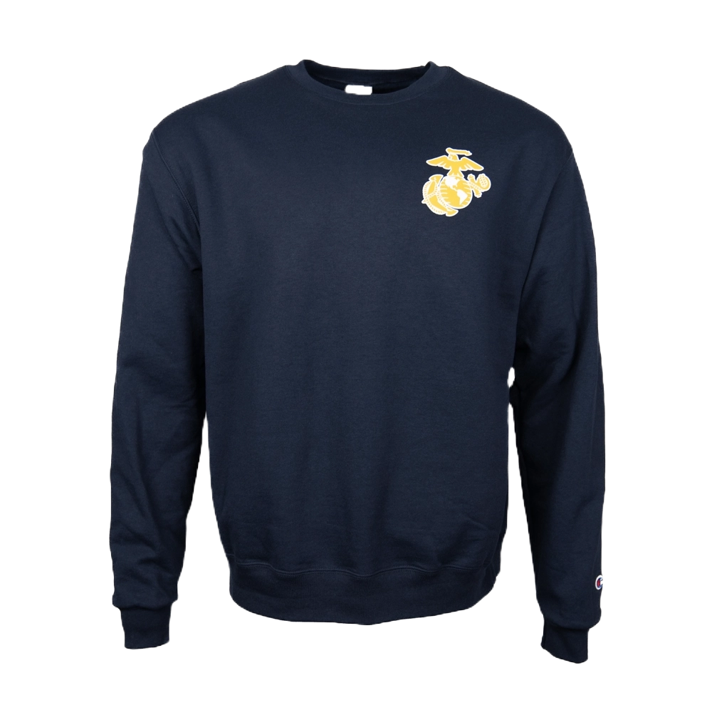 The USMC Champion Powerblend Crew in Navy combines comfort and durability for everyday wear. Made from a premium cotton-poly blend, it’s designed to resist shrinking and pilling while offering superior softness. Perfect for cool weather or layering, this crewneck sweatshirt keeps you warm and proud wherever you go.