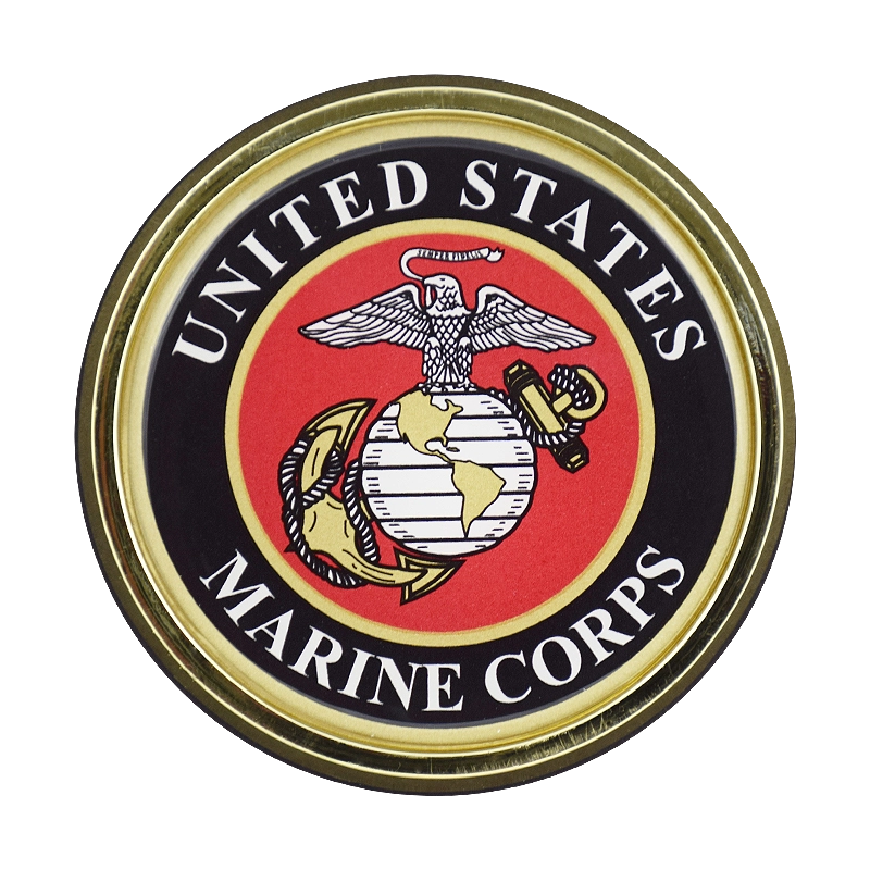 Full color USMC emblem on chrome auto emblem.