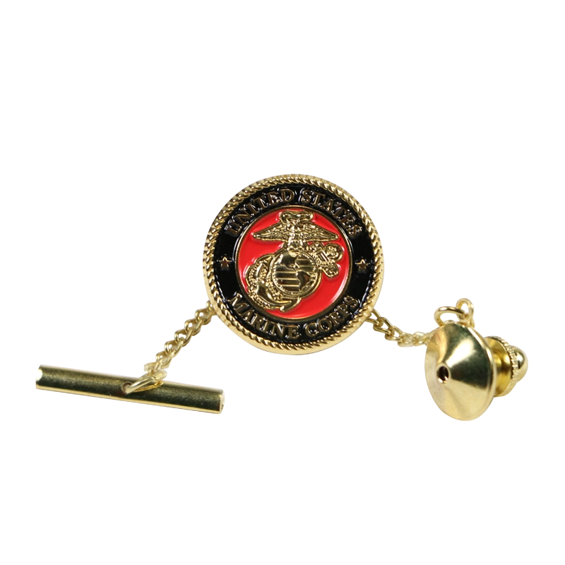Gold tie tack with full color USMC emblem will look good with any tie in your closet. USMC emblem is made of soft enamel with bright colors.