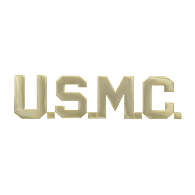 Gold finish “U.S.M.C.” lapel pin measures approximately 1 3/4″ x 1/2″.