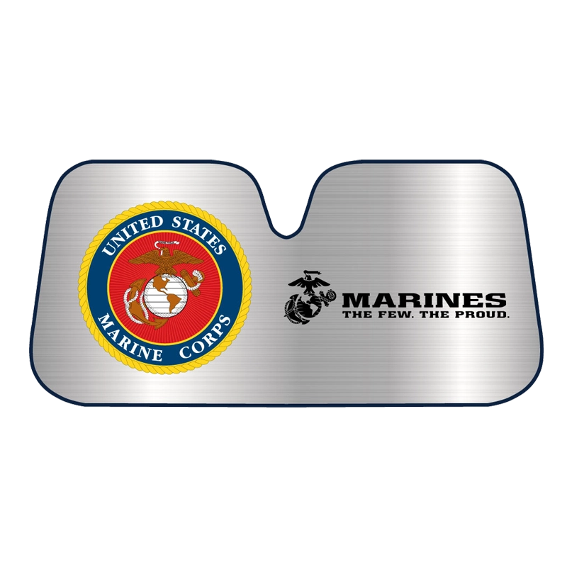 Keep your car or truck cool this summer with this USMC car shade. Left side has full color USMC emblem. Right side has Eagle, Globe & Anchor silhouette with “Marines – The Few. The Proud.” in black.