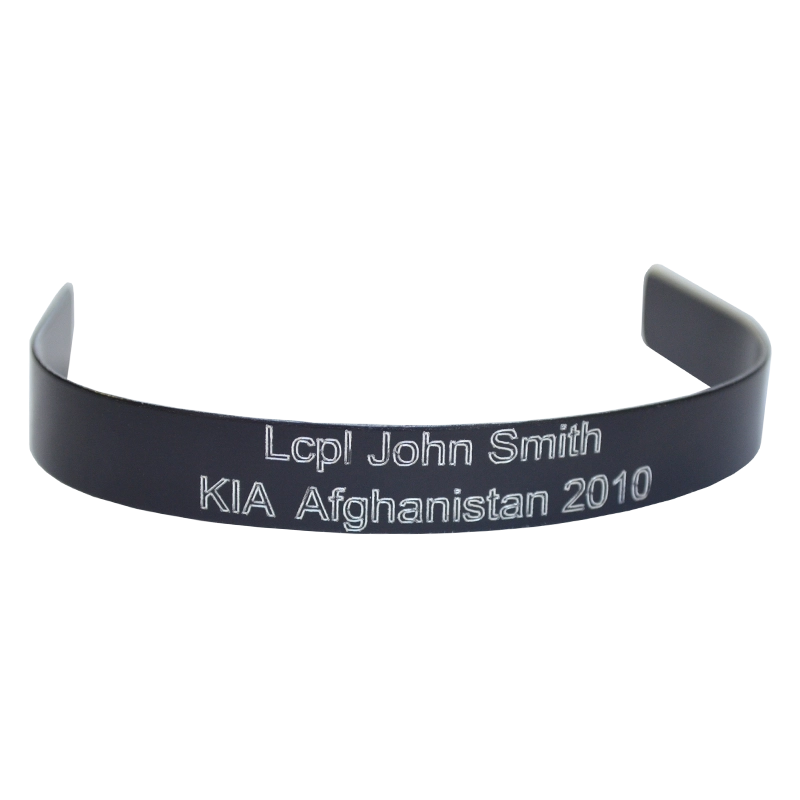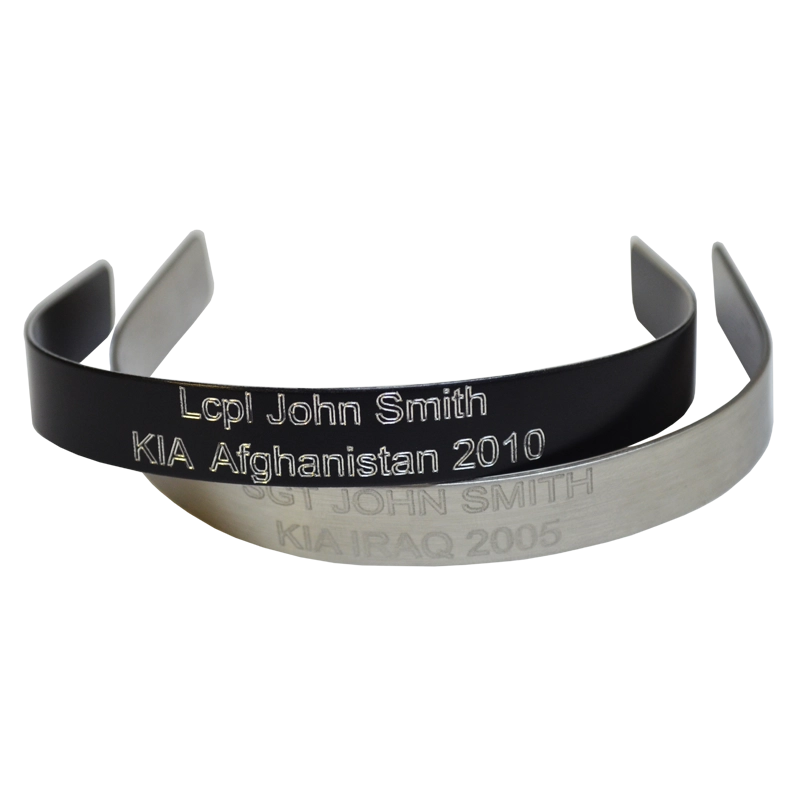 - Logo/artwork is available but NOT included. You can Special Order a Warrior or KIA bracelet with artwork such as EGA, rank insignia, etc. by contacting Customer Service at 888-237-7683