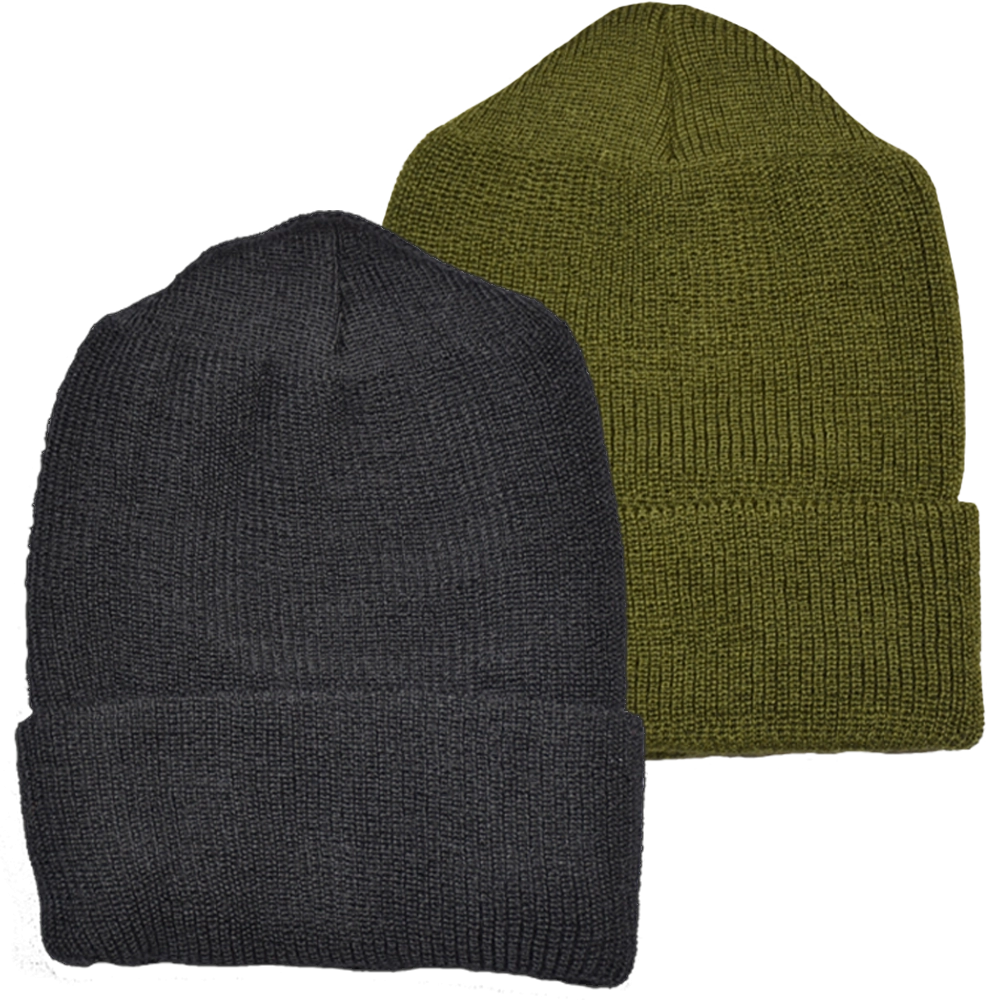 Wool watch cap measures 11″ to 12-1/2″ in length. Wool has the unique ability to retain warmth, even when wet. Available in Black or Green.